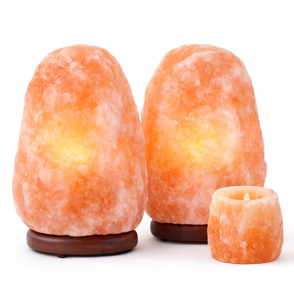 Varázsold meghitté az ünnepeket ezzel az egyedi szettel: 2 db 2–3 kg-os Himalája sólámpa, melyek meleg, természetes fényt árasztanak – és ajándék só mécsestartóval kedveskedünk!
